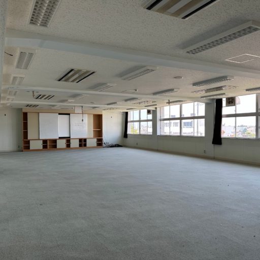 新棟に入るとまず一階に本のない本棚だけがずらりと並んだ図書館があり、そして階段を登ると旧棟ほどの数ではないが、多くの部屋が連なっていた。最上階には大学機関によくある階段上に座席が並んだ大講義室があった。旧校舎と比べると残された物が少なく、部屋の形状、機能も均質的であったが綺麗な居室たちが残っていた。