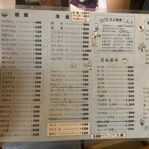 そして今回は昼食をとりに、旧校舎時代多くの学生教員がお世話になったという大衆食堂「マミー」を訪れた。プラス200円で好きな付け合わせ3つを付けられるミニ定食がおすすめである。味も普通に美味しい。とある人が食べていた鰻丼も1000円とは思えないボリュームで美味しそうだった。