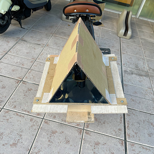 本連載は建築と自転車を組み合わせた表現を通じて建築の静的なイメージを覆し、建築と移動が持つ新たな可能性を探求している。引き続き、自転車、光、造形的な模型・物体の相互作用に焦点を当て、どのような表現が可能かを探る。今回は万華鏡案の検討を引き続き行った。