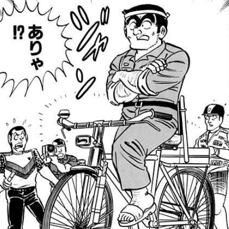 第60巻には「開発!人間フレームの巻」というエピソードがある。このエピソードが掲載されたのは1989年で、この時期は80年代後半のバブル期にロードバイクブームが起きていた時期にあたる。このエピソードでは、両津が自転車に乗って出勤し、自転車ブームに乗じて自転車レースに参加する話が展開される。レース中に両津の自転車はバラバラになってしまう。しかし、両津は自身の身体を自転車のフレームにして優勝するエピソードとなっている。