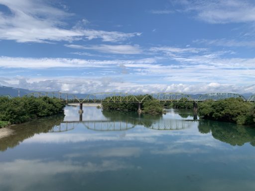 今回、揖斐川を渡る時に少し遠回りをして重要文化財でもある旧揖斐川橋梁を渡った。橋の真ん中から見る景色が絶景だった。天気も良く風もあまり吹いていなかったため、水面に風景が反射しており、とても美しかった。
