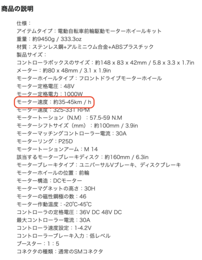 購入できるサイトを丁寧に眺めていたが、よく見かける自転車ブランドもあってのことか、丁寧に24km/hの上限文字が目に入った。