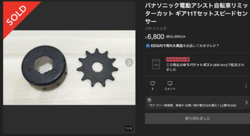また、電動アシスト自転車のスピードセンサーリミッターをカットする違法なパーツが出回っているとのことだ。筆者自身もフリマアプリで有名なメルカリにて発見した。既に売買された後であった。