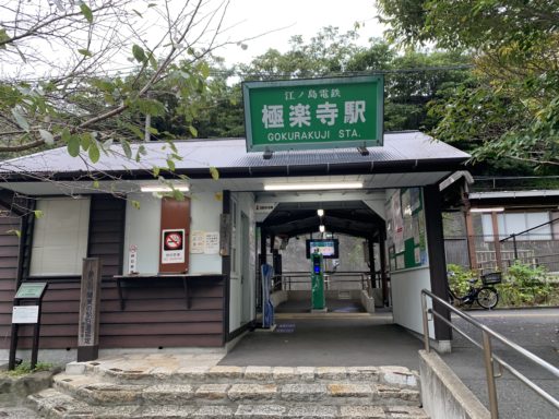 関東の名駅100線にも選ばれてる極楽寺駅前には自転車屋さんがある。閑散とした雰囲気の中に独自のゆるさがある空間で、江ノ電の15駅の中でプラットフォームが最も侘しい駅でもある。 駅の真横には極楽寺がある。花の寺として有名で桜と紫陽花など季節に応じて花々が咲き乱れる。筆者が鎌倉の推し寺として観光を検討している友人知人に勧めている寺の一つである。