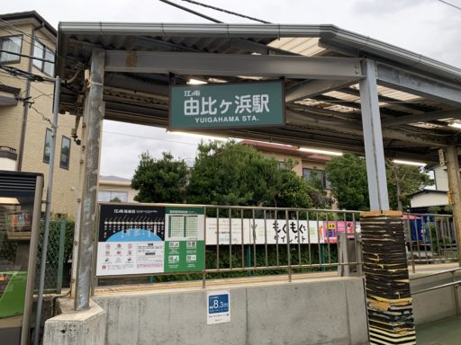 神奈川県内で屈指の人気を誇る由比ガ浜海水浴場の近くに駅がある。この駅は住宅街の真ん中に位置しており、すぐ近くに鎌倉駅があるにも関わらず周辺は閑散としている。