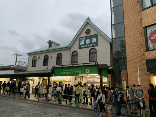 ゴールである鎌倉駅へ着いた頃には弱い雨がぱらついていた。筆者は遠出をすると大体雨に降られる人生なので、鞄の中に仕舞っていた折り畳み傘を取り出し、自転車を返却する。三連休の中日だったので、駅前は賑わっていた。