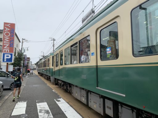 ランナーの横を走る江ノ電。これほどまでに街に溶け込んだ電車を僕は知らない。