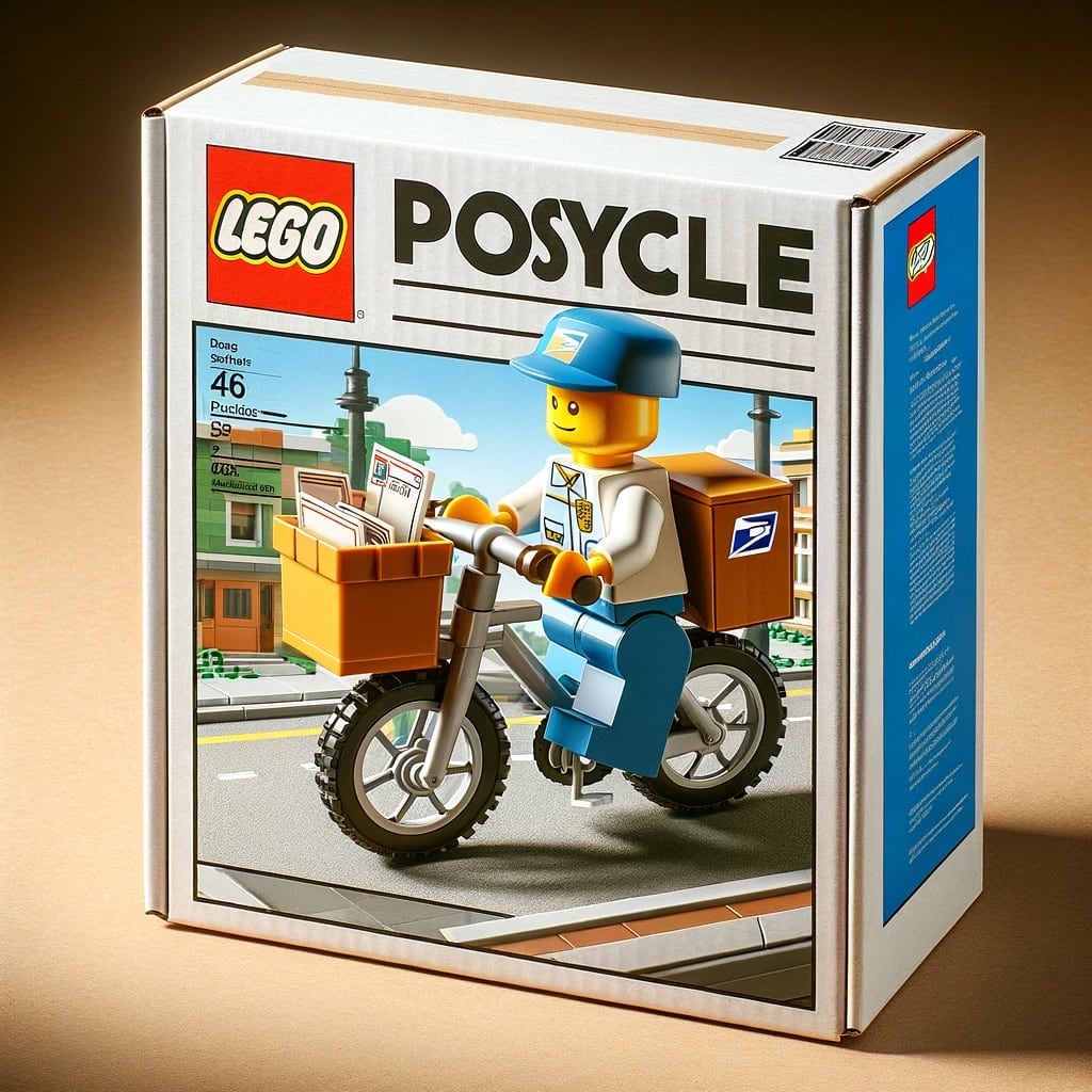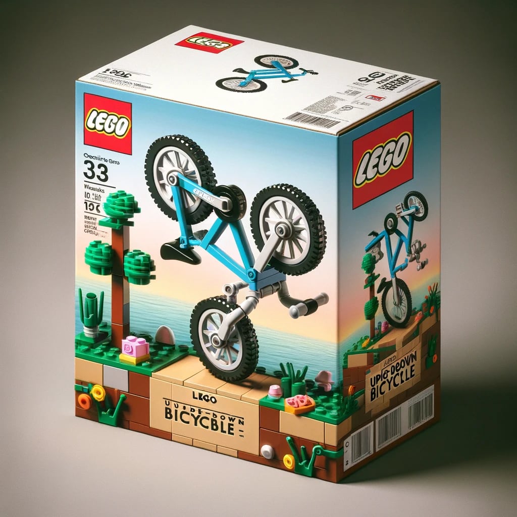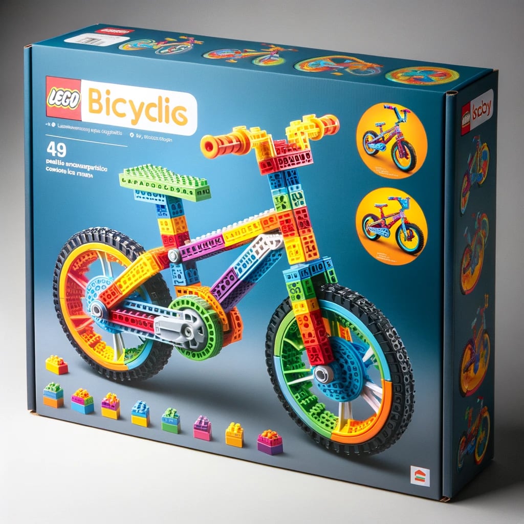 そんな折も折り、思い立ってChatGPTに絵を描かせた。LEGOの自転車パッケージだ。同じOpenAIが開発した画像生成AIであるDALL-Eが組み込まれているので、簡単に絵の内容を伝えるだけで良い。数秒から十数秒かかるものの、的を得た、あるいは思いもかけない画像が得られる。ちなみに、これが利用できるのは有償のChatGPT PlusやChatGPT Enterpriseアカウント。無償ならBingでも利用できるそうだ。