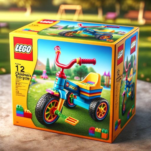 プラスティックのブロックで作られたオモチャの自転車があります。そのパッケージの箱を写真のように描いてください。