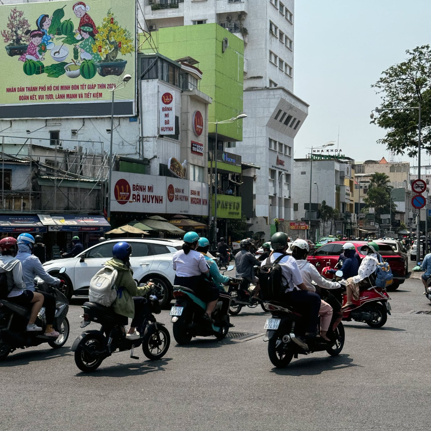 ところで自転車には慣れてきたものの、スクーターやクルマに乗ってカオスな渋滞道路に突進するほどの勇気はない。そこでスクーターの後部に乗って市内を巡る観光ツアーに参加した。ドライバー兼ガイドはアオザイを着た20歳の大学生。14歳からスクーターに乗っているそうで、運転に危なげがない。ごく自然に混雑する道路を高速で駆け抜け、別の車列を横切り、離脱合流している。