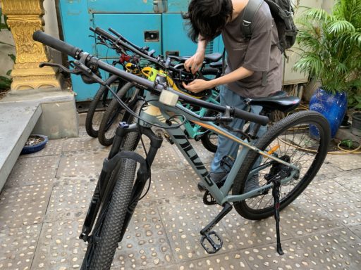 十年前にシェムリアップを訪れた際にはママチャリに乗ること以外に自転車の選択肢がなく、自転車のフレームには油性ペンで「〇〇高校 田中太郎」と書かれており、盗品を日本から輸入しているような想像が働いた。