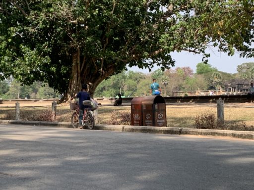 有料のチケットを買って入場することが出来る遺跡エリアの中には駐輪場が設けられていた上に、ゴミ箱が至る所に設置されていた。係員も増え治安の良さも感じる。アンコール遺跡はとても広く市街地までも遠いが、ピンチの時に頼れる安心を感じた。