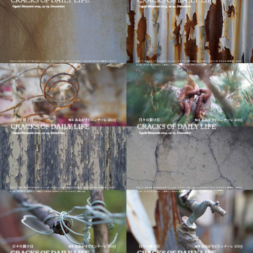 岐阜おおがきビエンナーレ「Cracks of Daily Life/日々の裂け目」IAMAS(2015)では、タイトルの上部半分が滲んでいる。これは写真の素材感や距離感と調和する曖昧で不確実な表現を試みている。