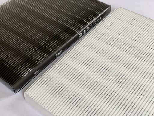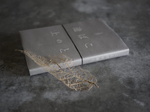 岩瀬崇の「ことばの途上」あわ居(2021)では、折りたたまれた表紙カバーの背面に書籍の全文(約4万字)が一望できるよう配置されている。文字サイズは1.5mmで、かろうじて読める程度だ。黒背景に白抜き文字の仕様は、印刷された紙の物質感を離れ、テクスチャーのようなものを生み出している。