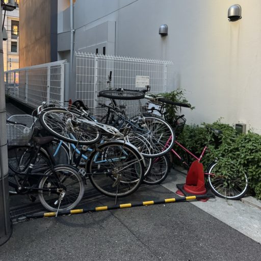 駐輪空間と柱(左側の自転車)