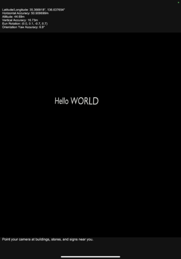 緯度35.363918 経度136.637654の地点にHello Worldの文字を表示