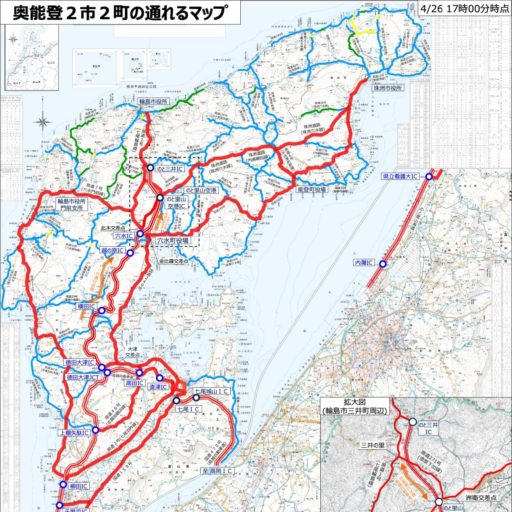ここまでが行程の半分で、以降は半島の内陸山間部を走る。通行禁止や一般車両禁止の道を避けて、県道7号から県道51号を抜け、国道249号へ入るルートだ。この検討には国土交通省や石川県の情報が役立ったものの、単なる画像であることが辛い。GPXなどのデータを提供しないのは何故だろう。フクシマでも痛感したように、此の国のデジタル無能行政が災害復興を妨げている。