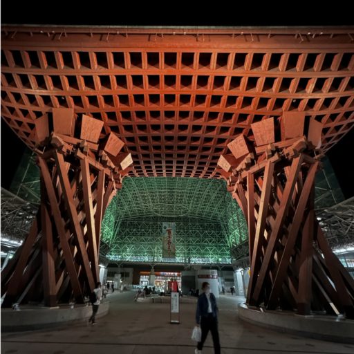 夕暮れて、のと里山海道を利用して帰路に着く。この自動車専用道路は現在も夜間は工事で通行止めになる。応急補修された路面の起伏が激しいので、ゆっくりと走るしかない。途中金沢に立ち寄る。北陸最大の都市だ。地震の被害が少なく、北陸新幹線や円安の恩恵を受けて多くの観光客で賑わっている。常に災害は格差を拡大させることを痛感させられる。