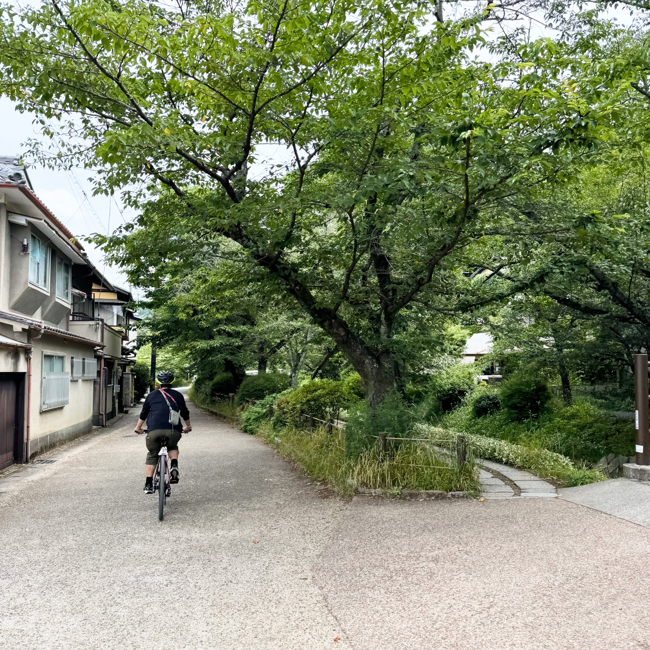 一息ついたところで、自転車で走り出す。梅雨前の晴れやかな青空と穏やかな風、絶好のサイクリング日和と心が踊る。七条河原町から鴨川を渡り、大和大路通を北上。有名な祇園白川あたりでも人がまばらなのは朝だからだろうか。それでも混雑がうかがえる八坂神社、平安神宮、南禅寺などには近寄らず、琵琶湖疏水や哲学の道に沿って走る。平坦な道がほとんどで、唯一のヒルクライムは曼殊院への坂道。