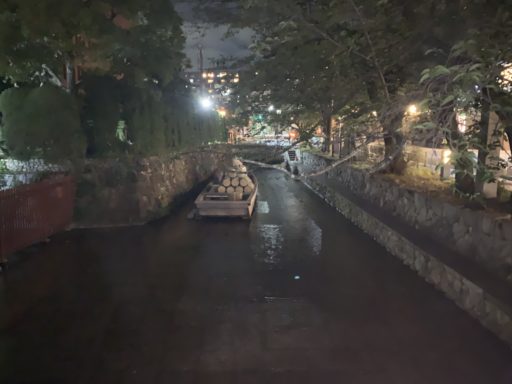 森鴎外の小説の中では静かな夜に小舟で川下りをしているイメージがあったが、時代は移り変わり川沿いは繁華街となって無数の飲食店が連なる。すぐ近くに流れる鴨川と比較するととてもこじんまりとした川で川幅も二メートルくらいしかないかもしれない。それは想像していた通りか。酔い客の喧騒、水商売の客引きなどで猥雑な雰囲気が漂う夜の街の片隅でスマートフォンを握り青空文庫を開く。しかし中々文字が頭に入ってこない。そのままマップをスクロールすると上流の方はいくらか風情がありそうだったので、そこまで散歩すると思い描いていた京都の趣が残されていた。早速一見さんお断りの料亭の近くで佇み、作品を読み進めると、小さな川のせせらぎの音の中に役人と罪人の会話の声が聞こえてくるような気がする。すぐそこにあった観光用の小舟が闇の中でのっそり動き出すような予感があった。