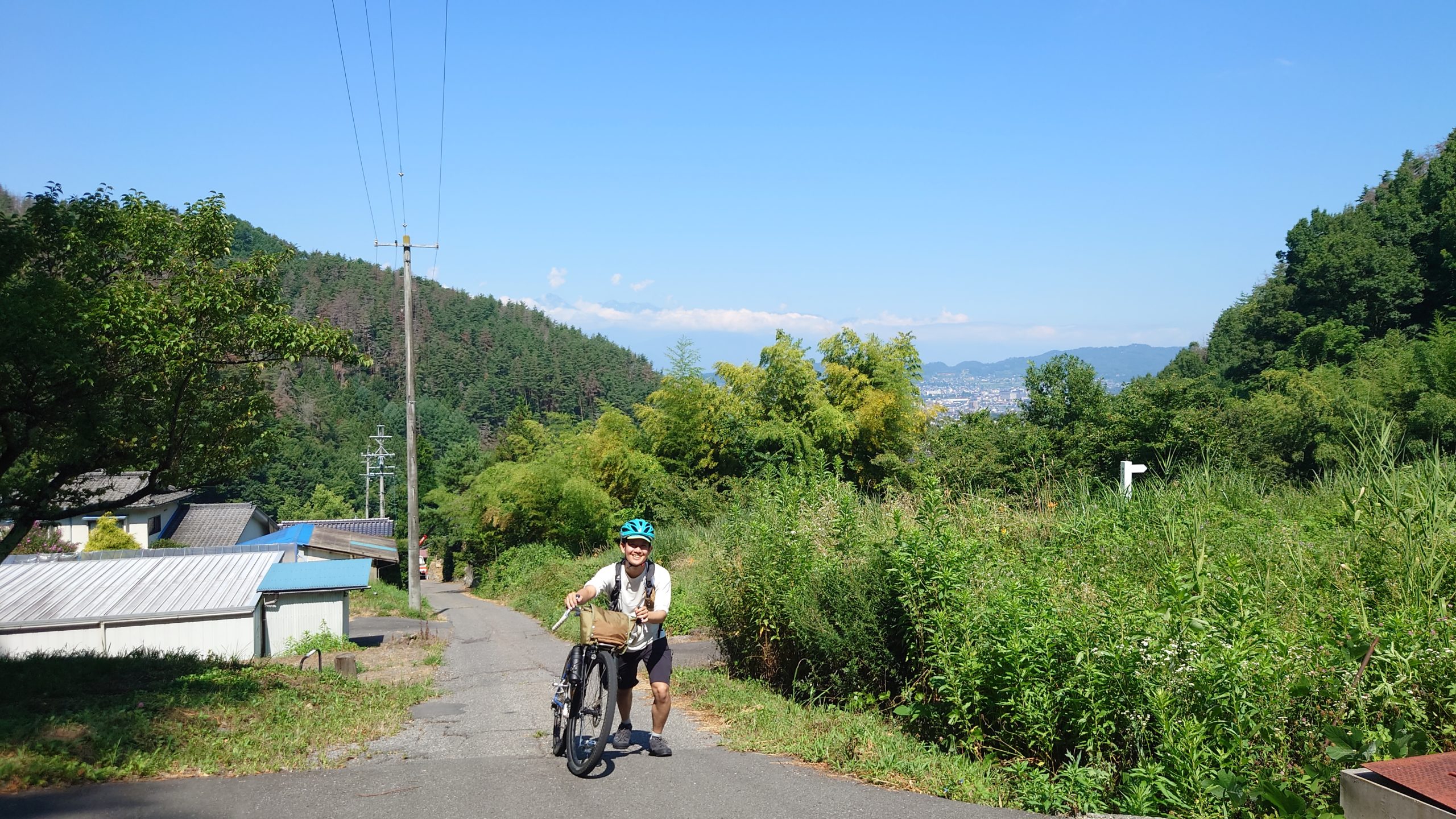 林道を抜け無事に舗装道路に出ると、里まではすぐだ。夕方が近づいているというのに、諏訪盆地の湿気と暑さの中に身体を浸していくような感覚がはっきりとあった。朝からここまで、フルコースといっていい素晴らしいサイクリングだった。最低な気分のところも含め、こういうのを一緒にやれる友達がいて本当に嬉しい。