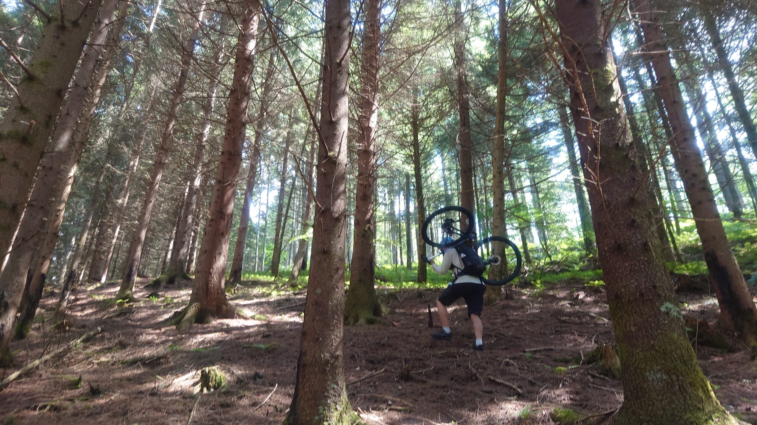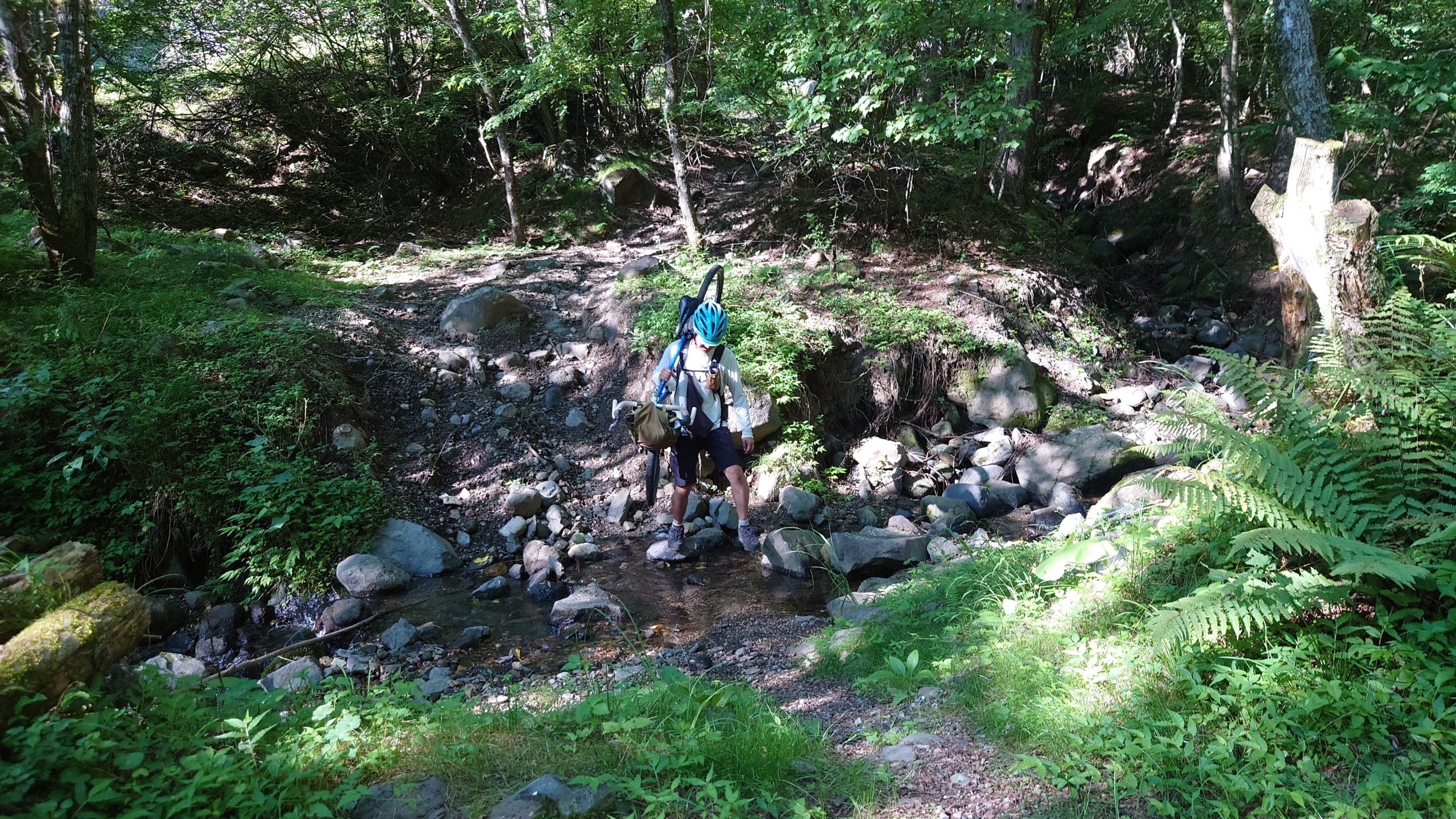 この押し担ぎがマジできつかった。その印象があまりに強いせいで、他のセクションがどうだったか思い出すのに苦労したくらいだ。久々の山サイということもあるし、キャンプ装備でがっつり担ぐこと自体をやっていなかったせいもある。