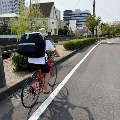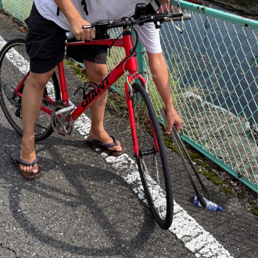 観光エリアを抜けて住宅地に入ると様相は一変する。同じ川沿いながら、道端にはゴミが点々としている。もはや自転車に乗っていられないほどゴミが多い。自転車にまたがったまま何度もトングを伸ばすのは姿勢が辛い。仕方なく自転車を降りて押し歩きながらゴミを拾う。これはゴミ拾いウォーキングの方が良かったかもとの思いが脳裏をかすめる。