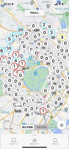 その過程でレンタサイクルは大体19時を過ぎると皇居を囲むように貸出可能自転車が少なくなり、翌朝になると再び利用者の勤務地付近に自転車が戻ってくることに気が付いた。想像していたより多くの人が通勤や通学にレンタサイクルを利用していることが分かった。機材を積むに当たって自転車の前カゴの大きさが重要であり、いくつかのポートを回って希望の自転車を探し出すところから東京での制作が始まった。