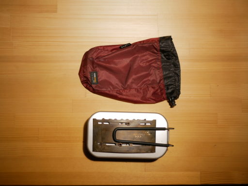 以前からのアップデートのメインはRSR Stoveだ。燃料容器と重ねてメスティン内に収まる寸法が便利なだけでなく、トルネード燃焼の安定した高火力で燃費も良好、クッカーの底で空気を断つだけ途中消火も可能(以前のレギュラーだったEvernewのチタンアルコールストーブはサイドバーナーがあるためこれが難しく、ボディも大柄)。また風火蔵もアルストの実用性を一気にブーストしてくれた。組み立て不要で展開は一瞬、風に強く(むしろ風を利用する設計)、半円形なのでメスティンを載せた際も安定感が高い。