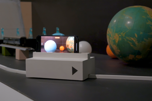 鑑賞者のスマートフォンで録画する「スマホスタジオ」は、台車にセットして2分間という鑑賞体験を、誰もが抗いようもなく拘束される。スマホのカメラの特性によって多少の画角差はあるものの、作者の意図した構図で映像が記録される。現代人が常に携帯しているであろうスマホを目の前にしながら、手放しで鑑賞するしかないこの体験は、老若男女を問わず等しく与えられる。故に視点を工夫しながらじっくり観察する時間が生まれ、まさに作品設計としてアイロニカルなプラットフォームとなっている。