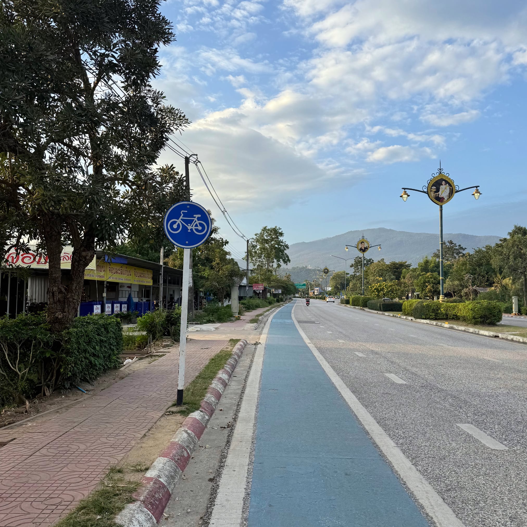 同じくドライバーさんが言うには、そもそも暑いので自転車で走る人は少ないらしい。雨季であれば雨量が多く、道は水浸しになるそうだ。それでも市街地や山間でも時々は自転車を見かけた。それもロード・バイクが多かったので、スポーツやレジャーとしての自転車利用が主流なのだろう。手軽な内燃機関車が主流のタイでは、それが自転車のエッジ(領域)なのかもしれない。
