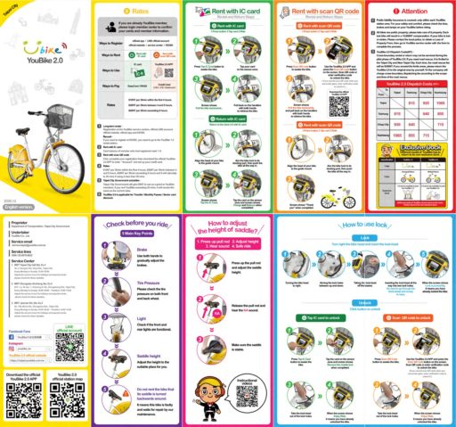 自転車自体はいわゆるママチャリ型で、乗り心地や整備状況は可もなく不可もなくといったところ。料金は30分ごとに10TWD(約47円)と安い。短時間の使用が推奨されているようで、長時間になると単価が上昇する。また、後輪カバーがオレンジ色の電動アシスト型もあり、単価は2倍になる。アシストは強力ではないので、特別な事情がなければ普通の自転車で良いだろう。