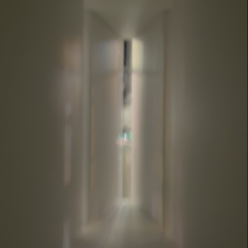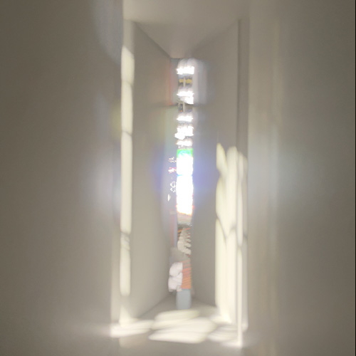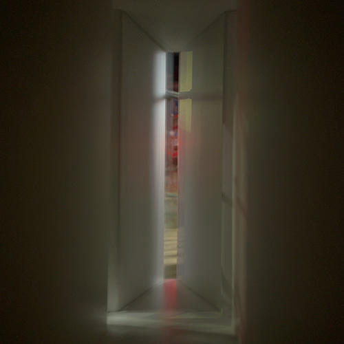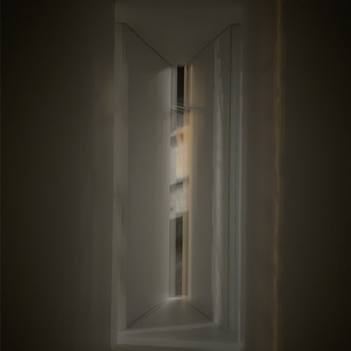 空間を幾何学的に構成するというルールの元、いくつか別の形の模型も現在制作している。光の線が画面を滞留するように描き出された静かな一枚を、少しずつ増やしていけたらと考えている。