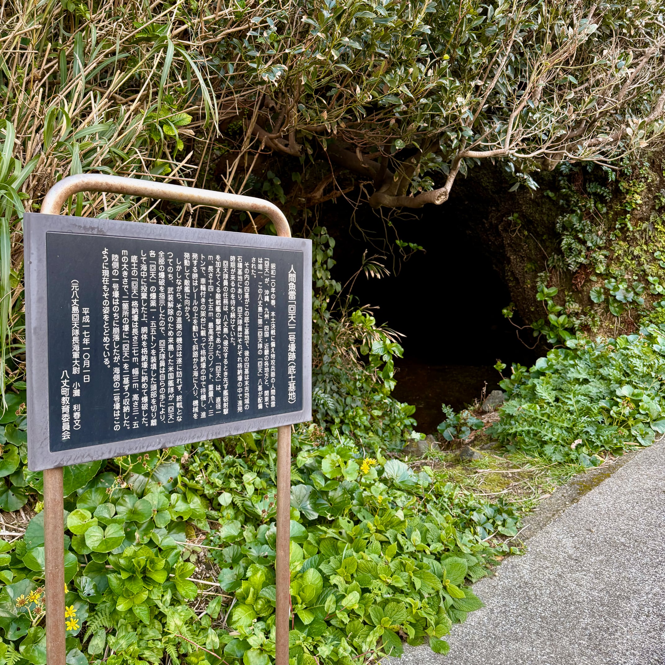 ところで、鳥も通わぬ八丈島は流刑の地であっただけでなく、太平洋戦争では本土の防衛拠点として軍事基地が構えられていた。兵士が20,000人も駐留する一方で、島民の大半は疎開して2,700人ほどしか残らなかったことからも、島が要塞化されていたことが伺える。戦争遺構もいくつか残っており、人間魚雷「回天」の基地跡である洞窟は整備されており、底土海水浴場からも歩いていける。