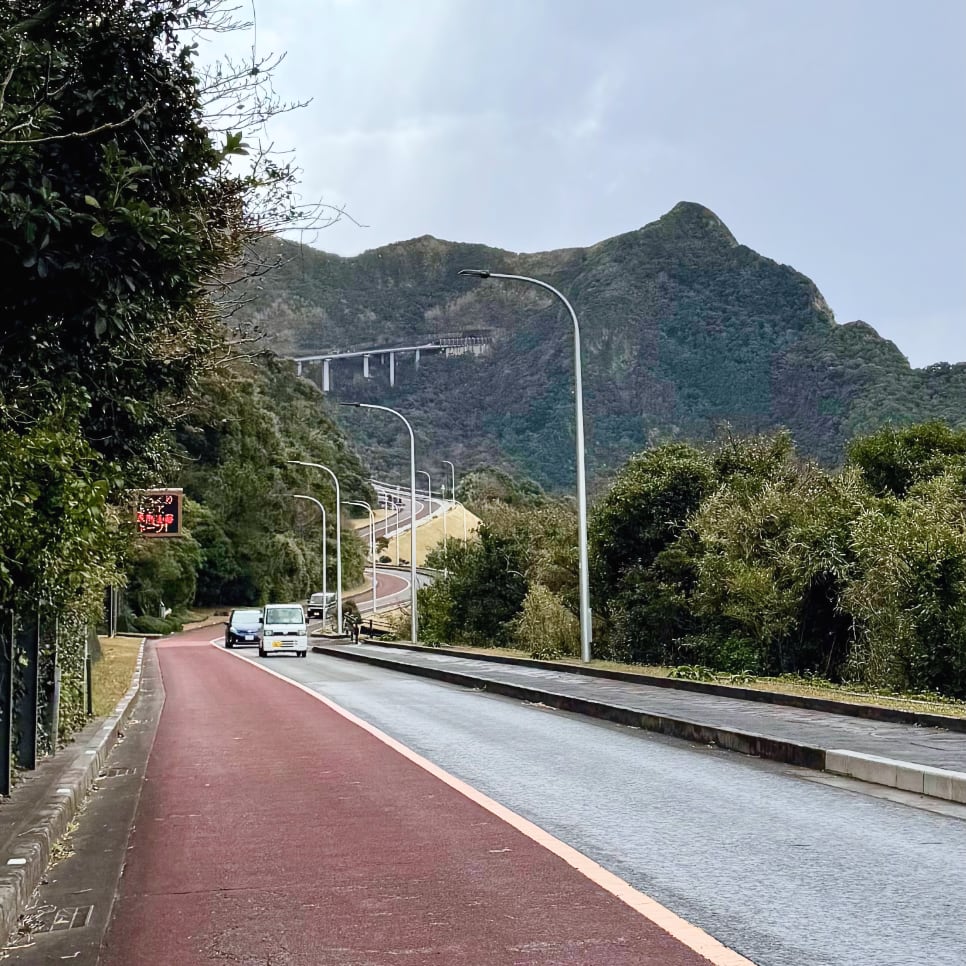 青ヶ島から戻った頃には寒さも和らいで陽がさすようになる。ここからはクロス・バイク型の電動アシスト自転車をレンタル。道路の整備は良く、路面は稀に荒れている程度で快適に走ることができる。一部ながら、自転車レーンや自転車道もある。時節柄か交通量は少なく、運転マナーが良いと感じた。しかも、盗難や悪戯はないから、自転車に鍵はないと言う。なんとも牧歌的で嬉しくなる。