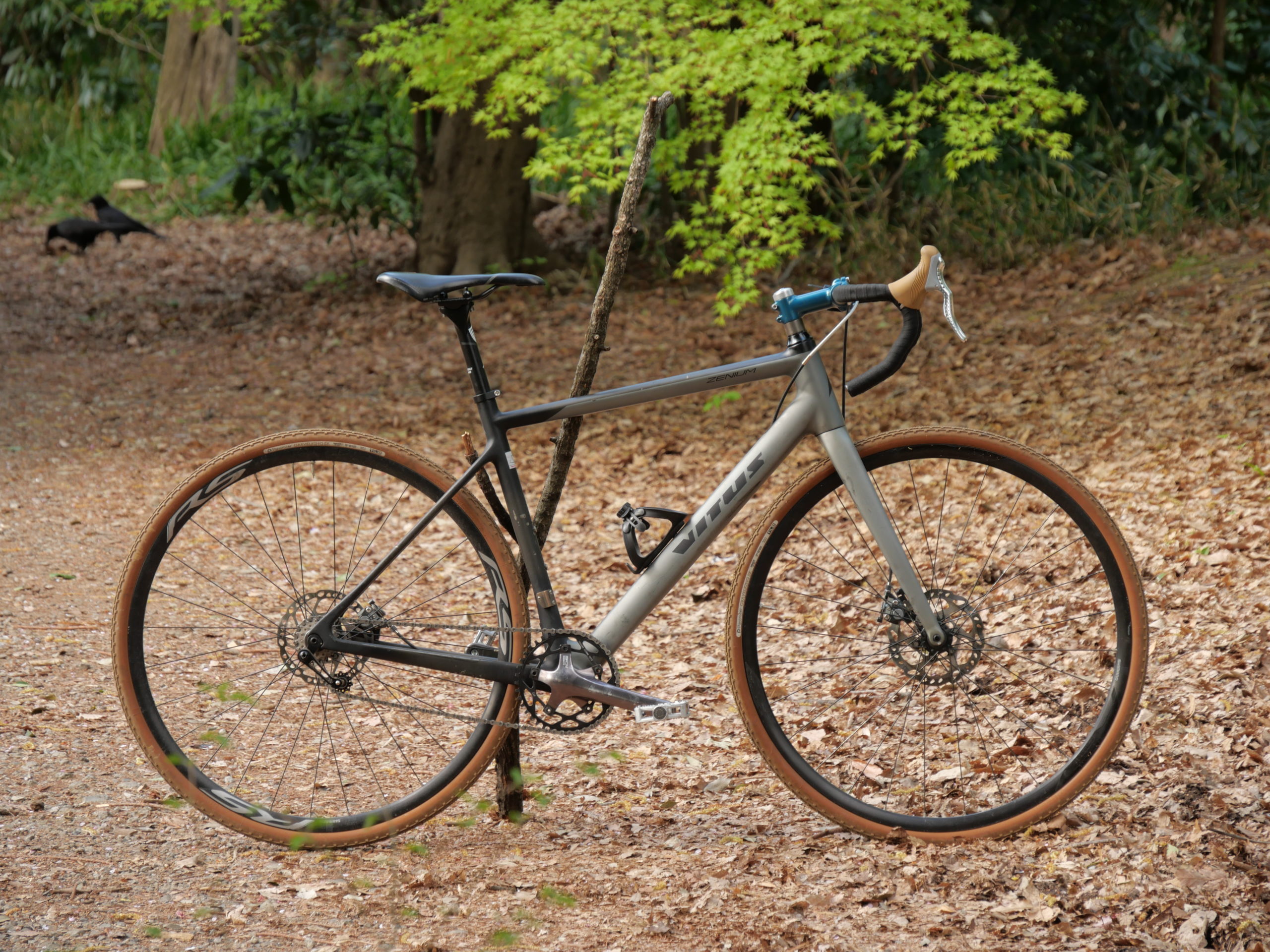 うちに転がり込んできたベース車はVitusのZenium(たぶん2020年モデル)。安定感と乗り心地を重視しつつ、スポーツ的な切れ味もあるバランス型、みたいなことがサイトには書かれている。ジオメトリー的にも、また実際に乗ってみてもそんな感じかなあ、というところ。公称されている最大幅にあたる32mmのタイヤ(グラベルキングSK、チューブ入り運用)をエントリーグレードのホイールに履いた状態でスタートしているので、それゆえの印象もありそう。車体の規格は前後ディスクブレーキ、スルーアクスル(12mm径100/142mm)、ケーブル内装、と、この年代の標準っぽい内容(詳しくない)。シートポストは普通の27.2mm径。