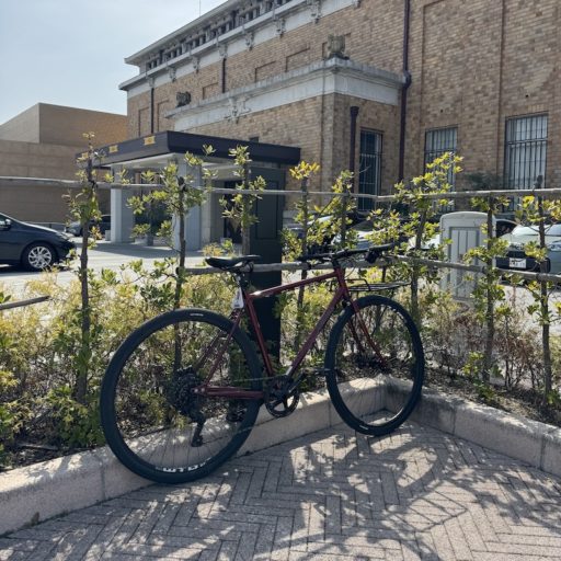 ところで、この駐輪場のすぐ隣には、シェアサイクルのポートが設置されている。こちらのほうぶは前輪を保持し、駐輪間隔を一定に保つことができる前輪スタンドが設備として備えられていた。なぜ、駐輪場のほうには設置されていないのかは皆目、分からない。
