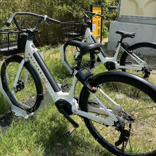 対照的に、瀬戸内国際芸術祭で訪れた小豆島では、また異なる光景に出会った。スペインから移植されたオリーブの木を訪れたり、作品が展示されている中山千枚田などの場所での鑑賞や体験をして、島の風土と芸術が融合した展示を楽しむ中、レンタルサイクルのポートや地域の集会所に設置された自転車ハンガーが目に入った。