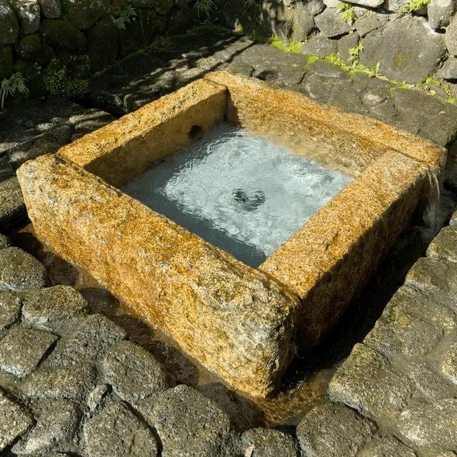 一番のお勧めはIAMASから北に1kmほど離れた加賀野八幡神社。緑豊かな境内に水場があり、大きな石桶に清らかな湧き水が溢れ続けている。十数本もの柄杓があることから分かるように、時には待されるほど水を汲む人が多く集まる。市販のミネラル・ウォーターより味わい深いので、さもありなん。他の自噴水もそれぞれ特徴があるので、ぜひ訪ねて欲しい。