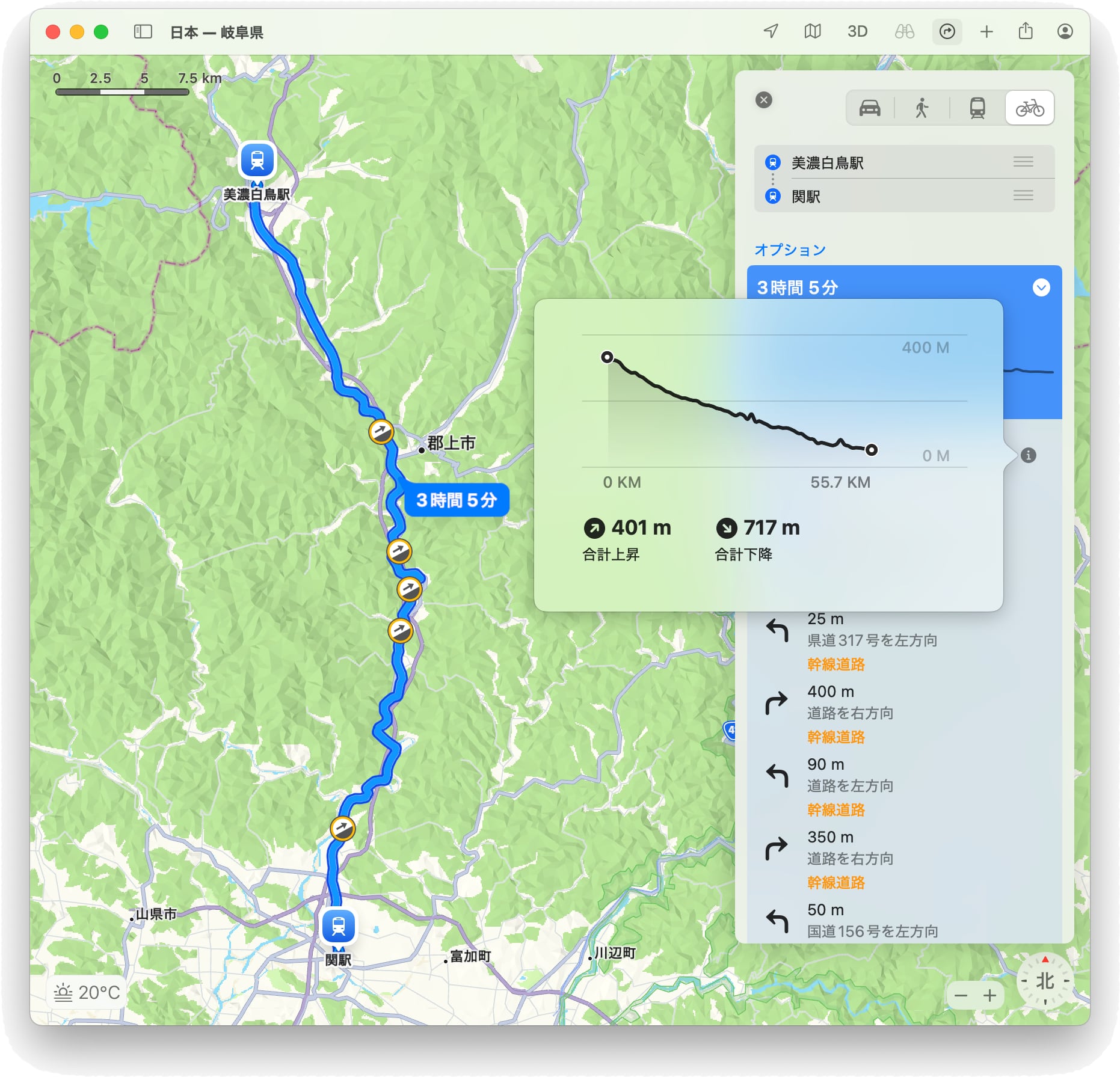 知人に誘われ、黄金週間にグループ・ライドに出かけた。日本三大清流のひとつ、長良川の上流までローカル鉄道で輪行し、そこから川沿いに中流まで下るコース。Appleマップでの自転車ルートでは約60km弱、多少のアップ・ダウンがありながらも、ひたすら下ることになる。しかも、知人は何度か走ったことがあり、先導を務めてくれる。至れり尽くせりの極楽ライドになりそうだ。