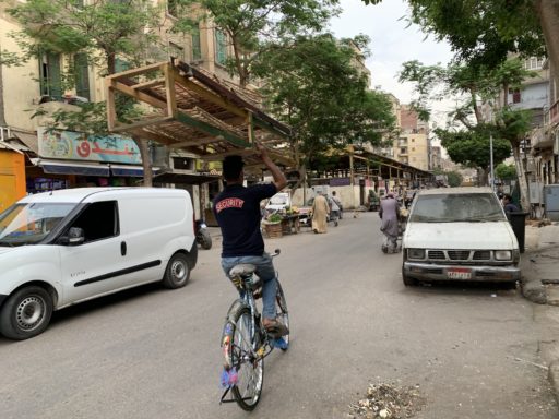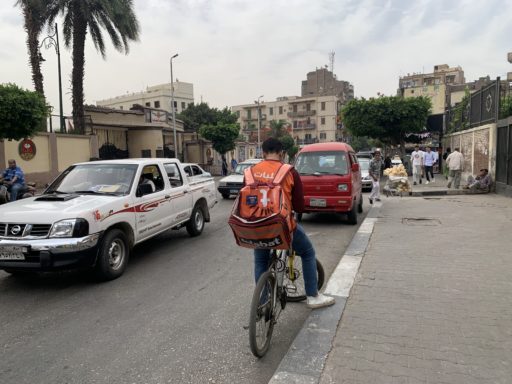 エジプトでもUber Eatsのような食事配達サービスが普及している。若者が街のカオスを潜り抜けて依頼者の食事を運ぶ。
