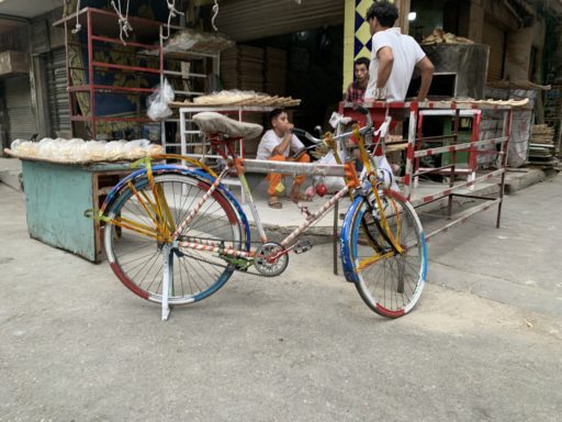 一番よく見かける巨大な前カゴ付き自転車。市場や商いをしている人が多く集まる地域で何度か沢山の荷を積んで通り過ぎていった。
