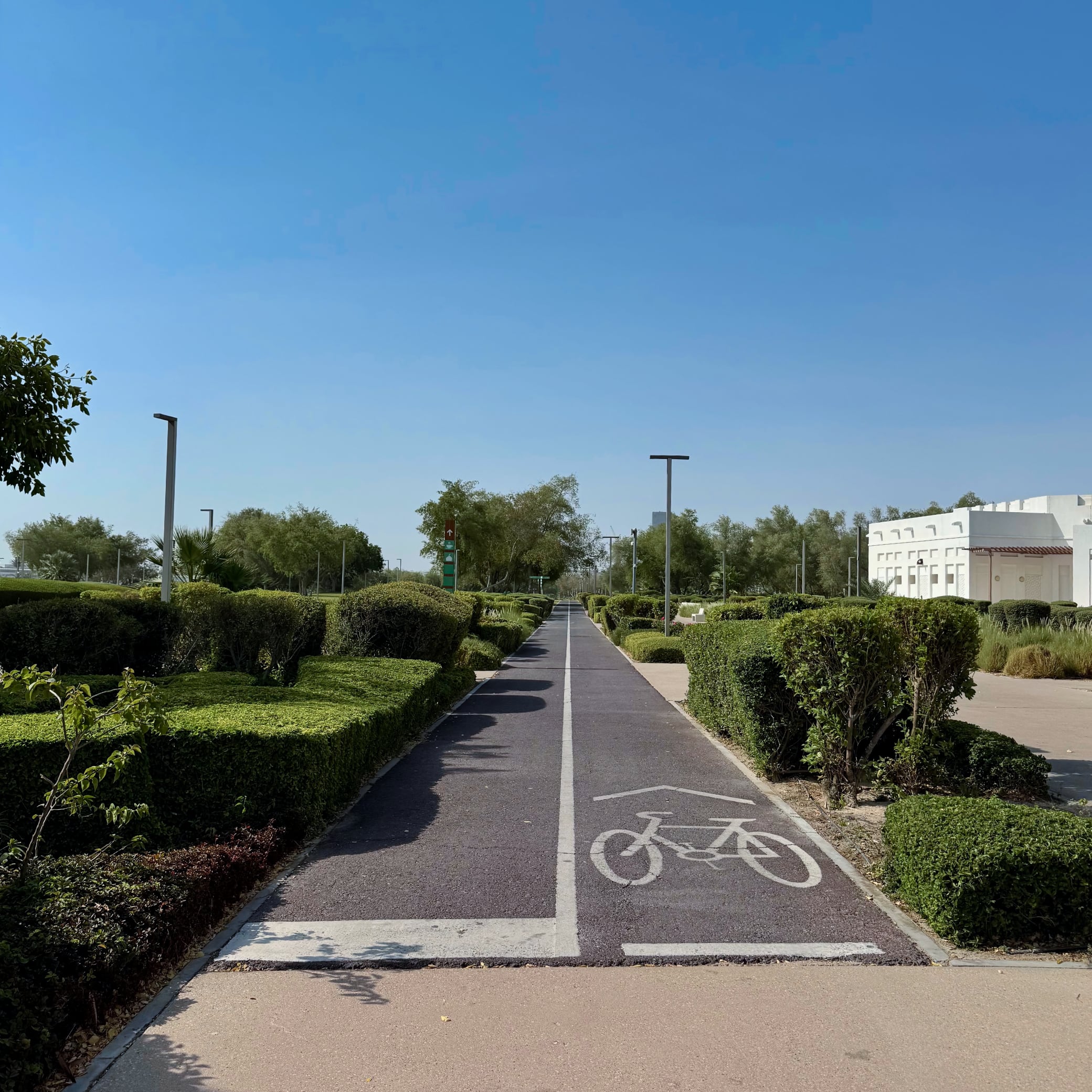 巨大な高層ビル群や豪奢な商業地と同じく、この素晴らしい自転車道は広大な砂漠に楔を打つオイル・マネーの賜物だ。不自然な営為の集積であり、緑化が止まれば一瞬で砂塵に帰すだろう。その中でロード・バイクを借りたショップRasen Sportsは機材が充実しており、レンタル料も適正。とても親切なスタッフと和かなサイクリストはオアシスに集まるベトウィンの末裔かもしれない。