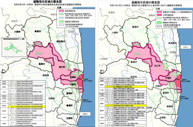 同じくフクイチに隣接する双葉町にも大きな変化がない。具体的な数値は未確認ながら、双葉町の移住・定住情報サイトには「震災前に7000人を誇った人口は2025年4月現在で居住者180人ほど」との記述があるので、より厳しい状況のようだ。一年以上前に整備されたJR双葉駅前に駅西住宅86戸は、落ち着いた雰囲気ながら、少し離れると廃屋と荒地ばかり。自転車で走っていても心苦しくなる。