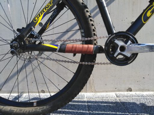 ここのところマジックギアを模索していた自転車、GiantのMCMは、1年ほど前に関戸橋のフリマで入手したものだ。仮組み段階ではリアディレイラー装着で1x2s、次にテンショナーで1x2sとして大弛峠越えのサイクリングに出かけ、それからテンショナーなしでディングルスピード(二通りのシングルスピードの組み合わせ)が成立しないかと淡い夢を膨らませた。MCMのデビューをまとめた記事では、「軸間固定ディングルの狭き門」と題し、次のように追記した。