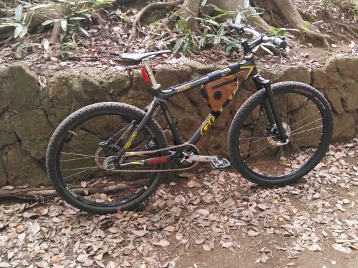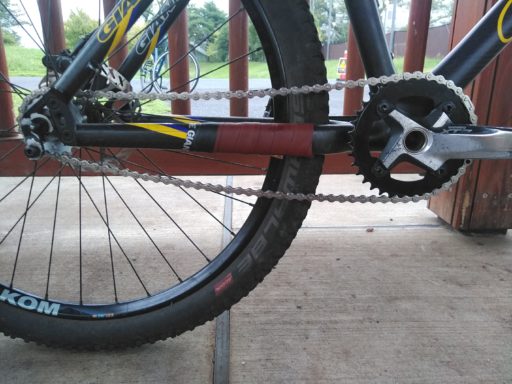 これよりもテンションが高くなる組み合わせを、FixMeUp!で算出してもらう(表では相対的に左にある組み合わせ)。手元のチェーンリングとコグの中から36/19を試すと(半コマが必要)、まだ少しゆるい。他のスチールMTBで気に入っているのと同等のギア比(1.89)なのだが、カーボンフレーム&フォークのこの車体ではちょっと踏み応えが足りず、かといってヒョコヒョコ遊び用としては重くて中途半端な感じがした。うーむ。