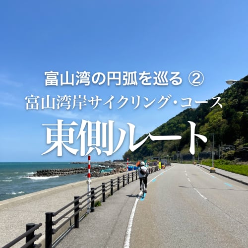 ナショナル・サイクル・ルートたる所以を探る富山湾岸サイクリング・コース2日間の実走。暴風雨に見舞われた前日の西側コースに対して、翌日は抜けるような青空のもとで東側ルートに挑む。こちらはサイクル・トレインがあるので利用しな