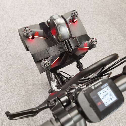 DJIの新しいドローンFPVを使って自転車に乗る。と書くと意味不明だが、要はドローンの機体を自転車の前部に取り付け、そのカメラからの映像をゴーグルで見ることだ。そうすれば、他の人が乗る自転車に乗る体験ができると考えた。言
