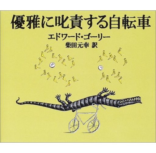 アメリカの絵本作家、エドワード・ゴーリー(Edward Gorey)の「優雅に叱責する自転車」(1969年)は、2人の子供が奇妙な自転車に乗って不思議な旅をする物語。それぞれはハンドルとサドルに腰掛けているが、ペダルを漕