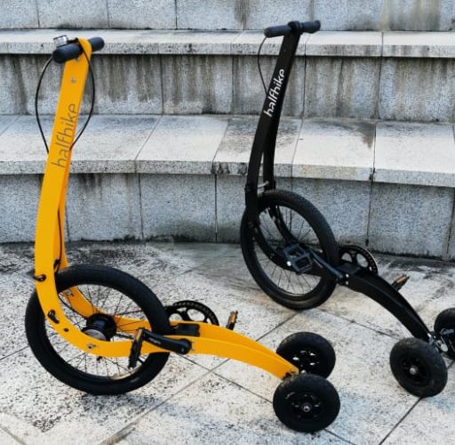ユニークな形状の立ち漕ぎ三輪車で、一般的な自転車の半分ほどの大きさしかないHalfbikeが第3世代となり、2019年5月に成立したクラウドファンディングによって、支援者に製品が届きつつある。「動く自然本能を目覚めさせる